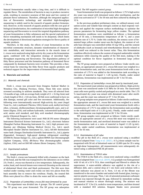 基于风味组学和微生物群落分析探究大黄鱼酵母发酵除臭密码:风味优化与创新机制研究 风味化学感官分析 食品风味化学与感官分析 2025年11月6日 20:00 山西