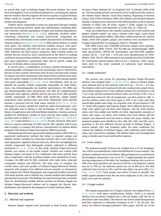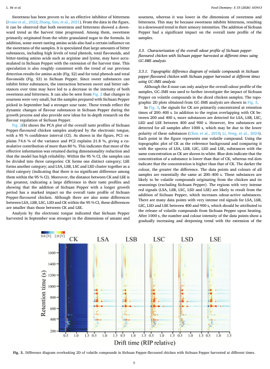 四川花椒采收时期对使用电子鼻、电子舌和色谱法检测的四川花椒味鸡肉的影响
