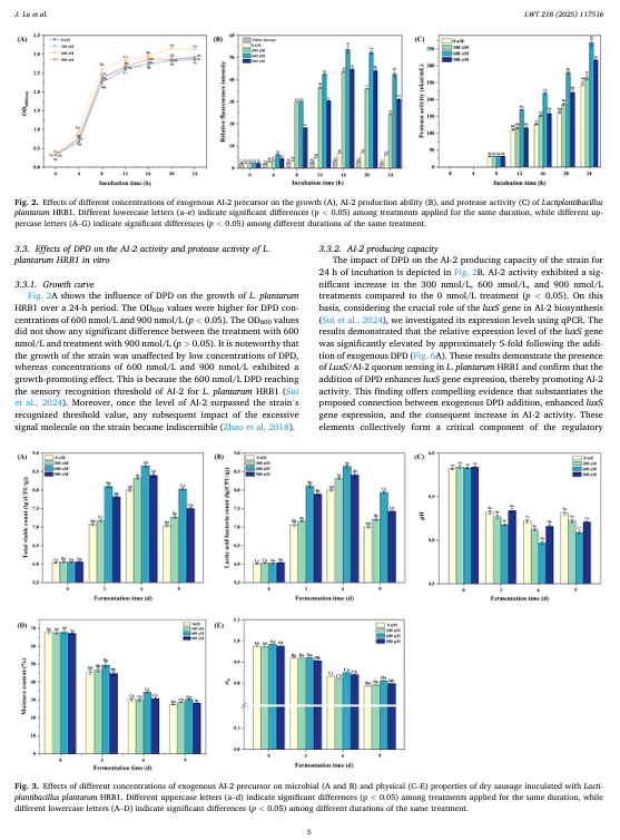 外源DPD对乳原植物杆菌HRB1发酵特性及风味形成的影响,体外及干香肠模型:来自群体感应系统的见解