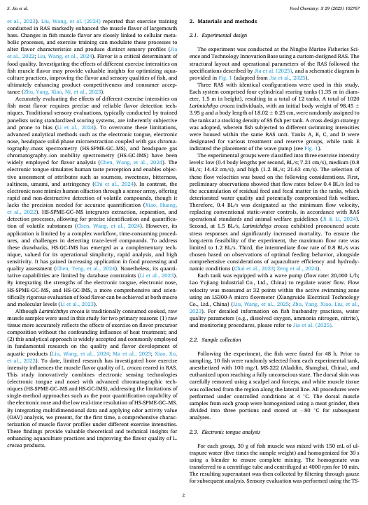 循环式水产养殖系统中大黄鱼的风味特征分析与优化:通过先进分析技术评估的运动强度对结果的影响