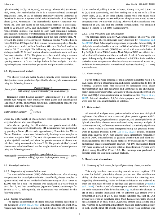 混合型植物-乳制品奶酪:乳酸菌和植物蛋白对成分、蛋白水解以及风味特征的影响